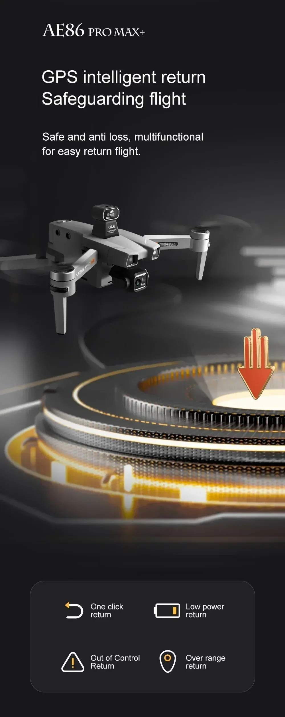 1.GPS one key to return to the take-off point, low power return, no signal return.