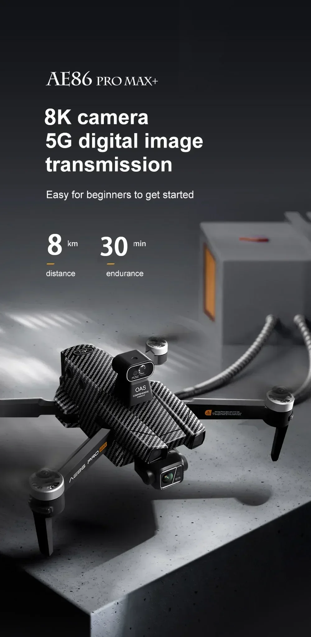 8.4K adjustable camera (3-axis mechanical stabilization gimbal + electronic stabilization + laser obstacle avoidance)