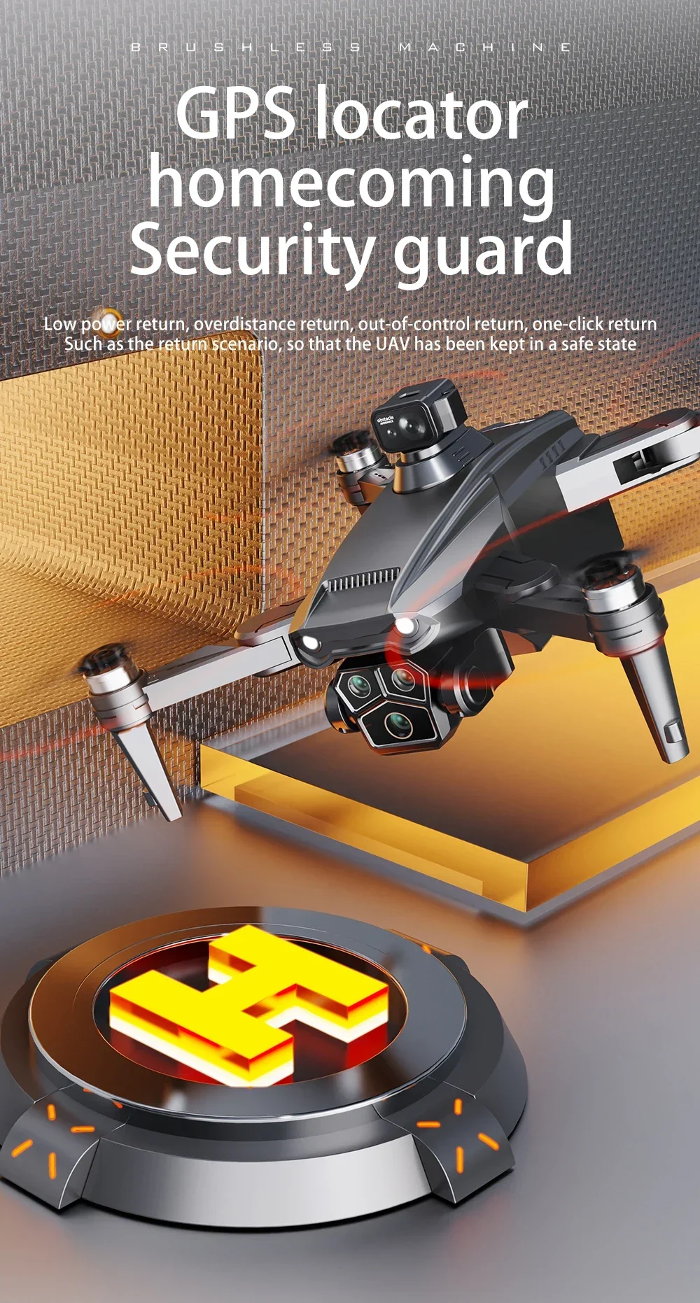 Low power return, over distance return, out of-control return, one-click return. Such as the return scenario, so that the UAV has been kept in a safe state.