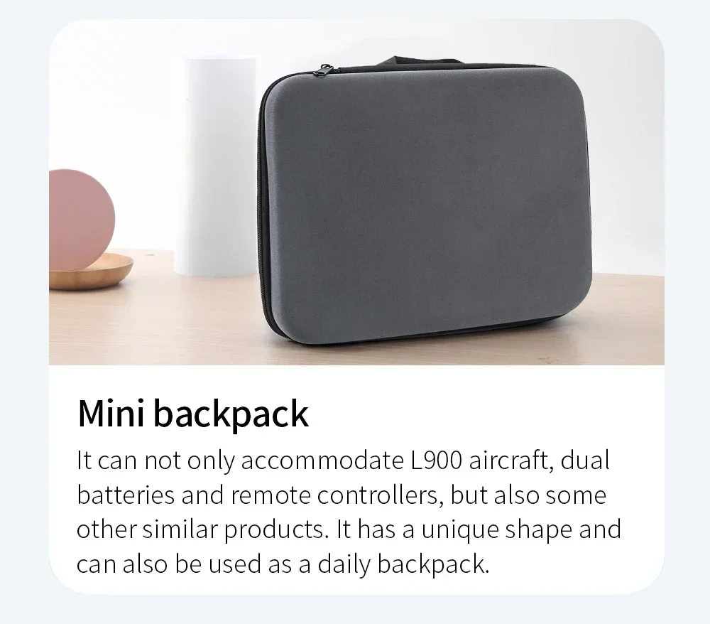 It can not only accommodate L900 aircraft, dual batteries and remote controllers, but also some other similar products. It has a unique shape and can also be used as a daily backpack.