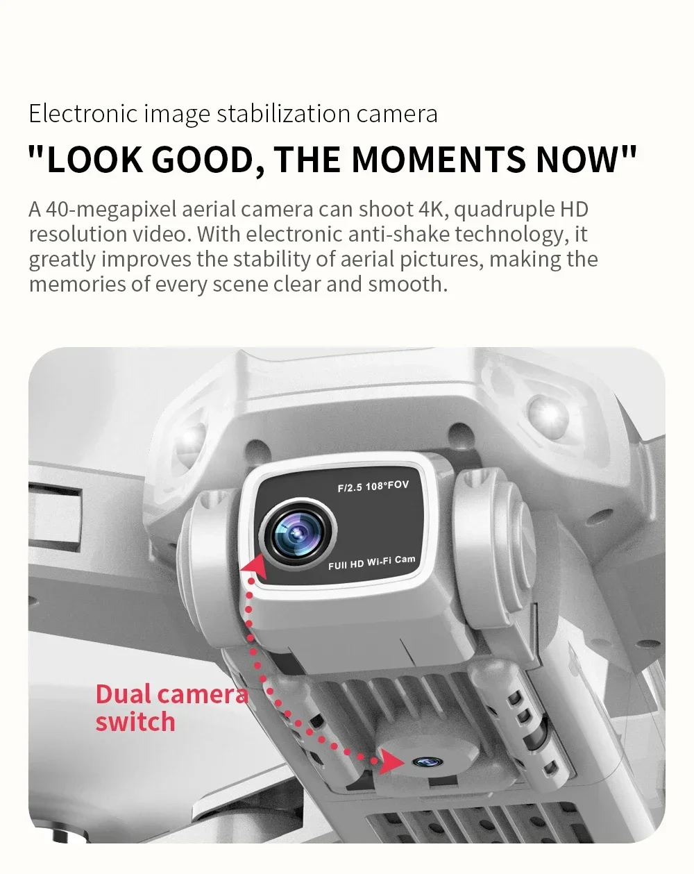 A 40-megapixel aerial camera can shoot 4K, quadruple HD resolution video. With electronic anti-shake technology, it greatly improves the stability of aerial pictures, making the memories of every scene clear and smooth.