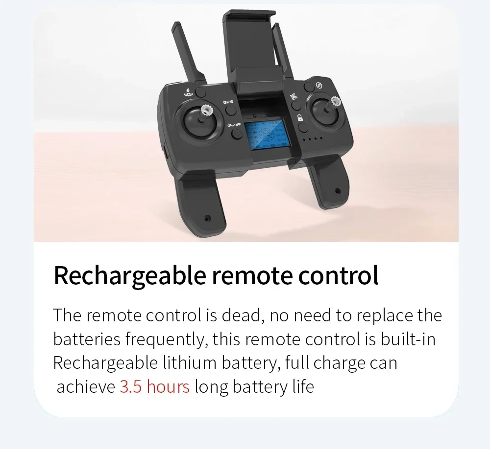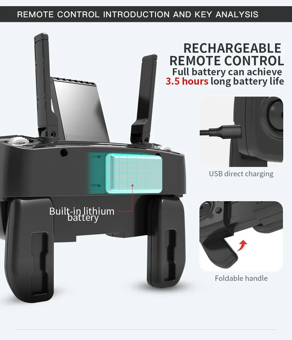 Using APP connection can bring stable high definition image transmission, standing in place can see the distant scenery. And the remote control adopts a foldable design, which can be kept folded when not in use, making storage more convenient.