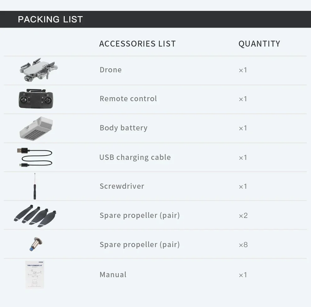 Quadcopter Size: 32*32*5cm (Unfoldable), 13*10*5cm (Foldable)