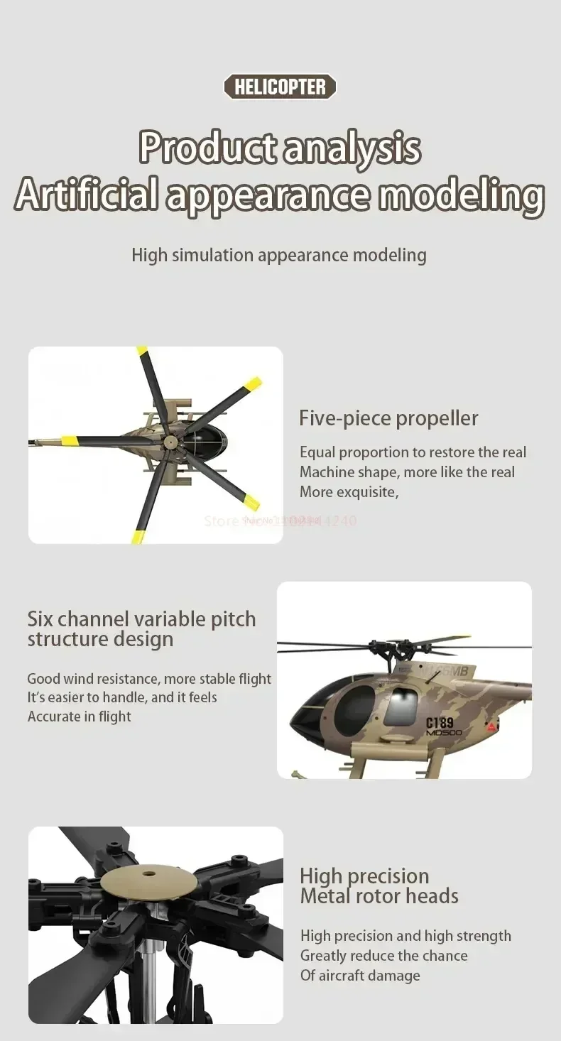 C189 Four way Single Propeller Aileron Free Photorealistic Helicopter (Fixed Altitude Version) 1:28