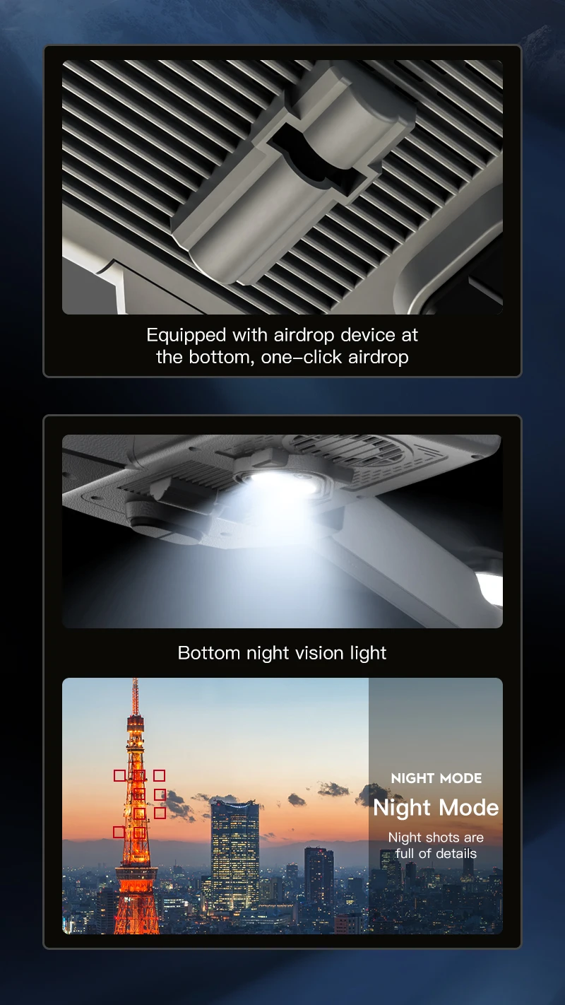 8. 4K adjustable camera (three-axis mechanical stabilization pan tilt+electronic stabilization anti shake+laser obstacle avoidance)