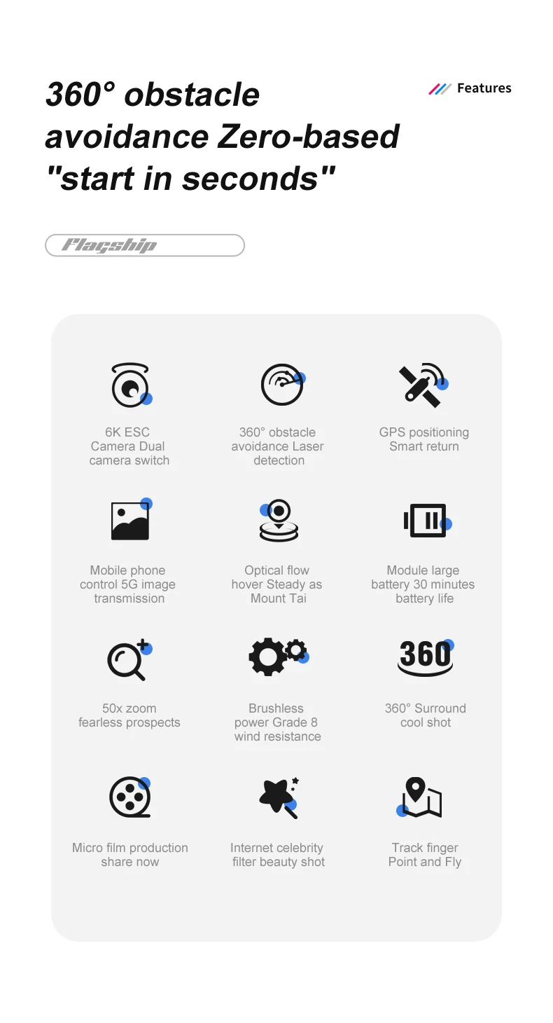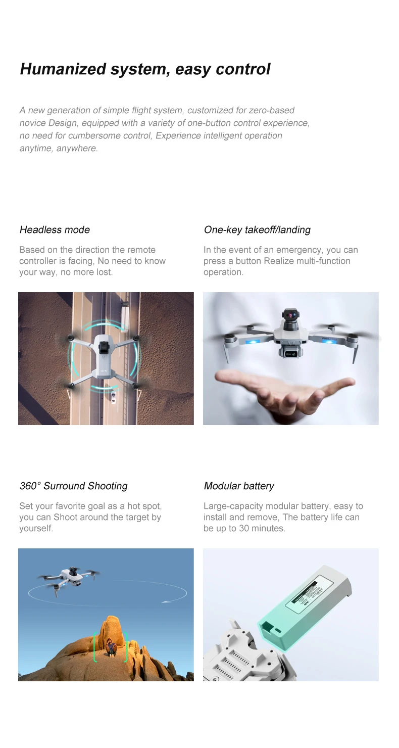 -Lightweight and Convenient to Carry Around.only 249g(With battery and obstacle avoider) weight drone body, No longer worry about air traffic control,lightweight and smart,making flying simple and fun from now on,easy shooting and recording life.
