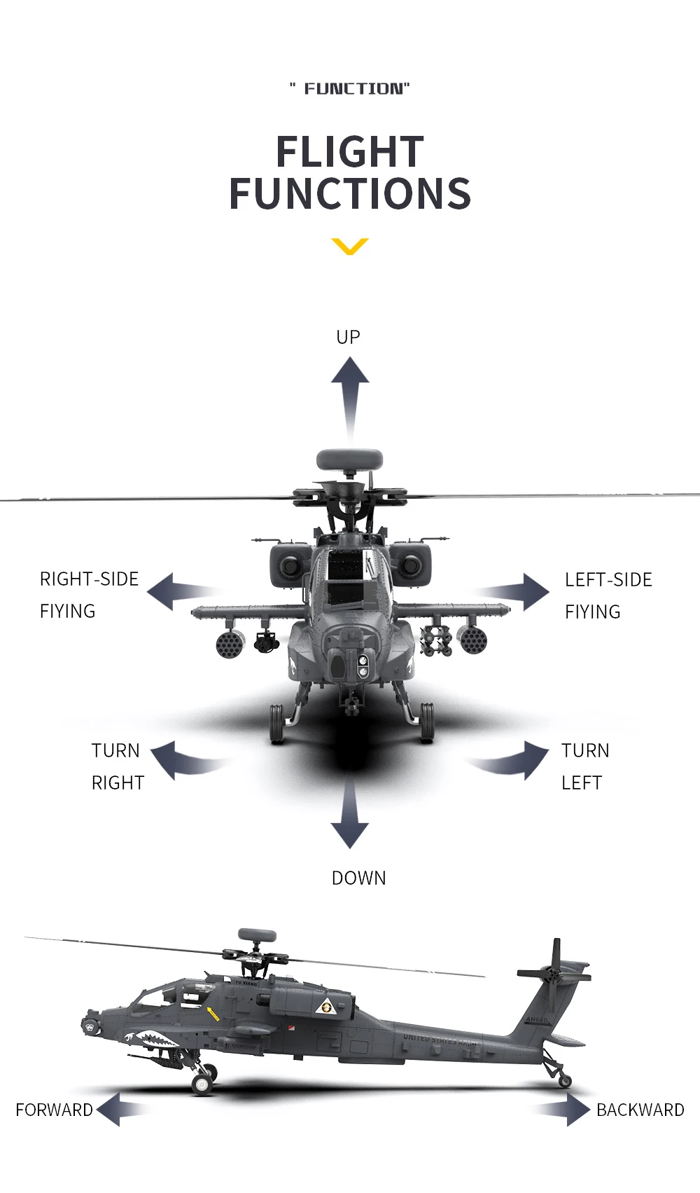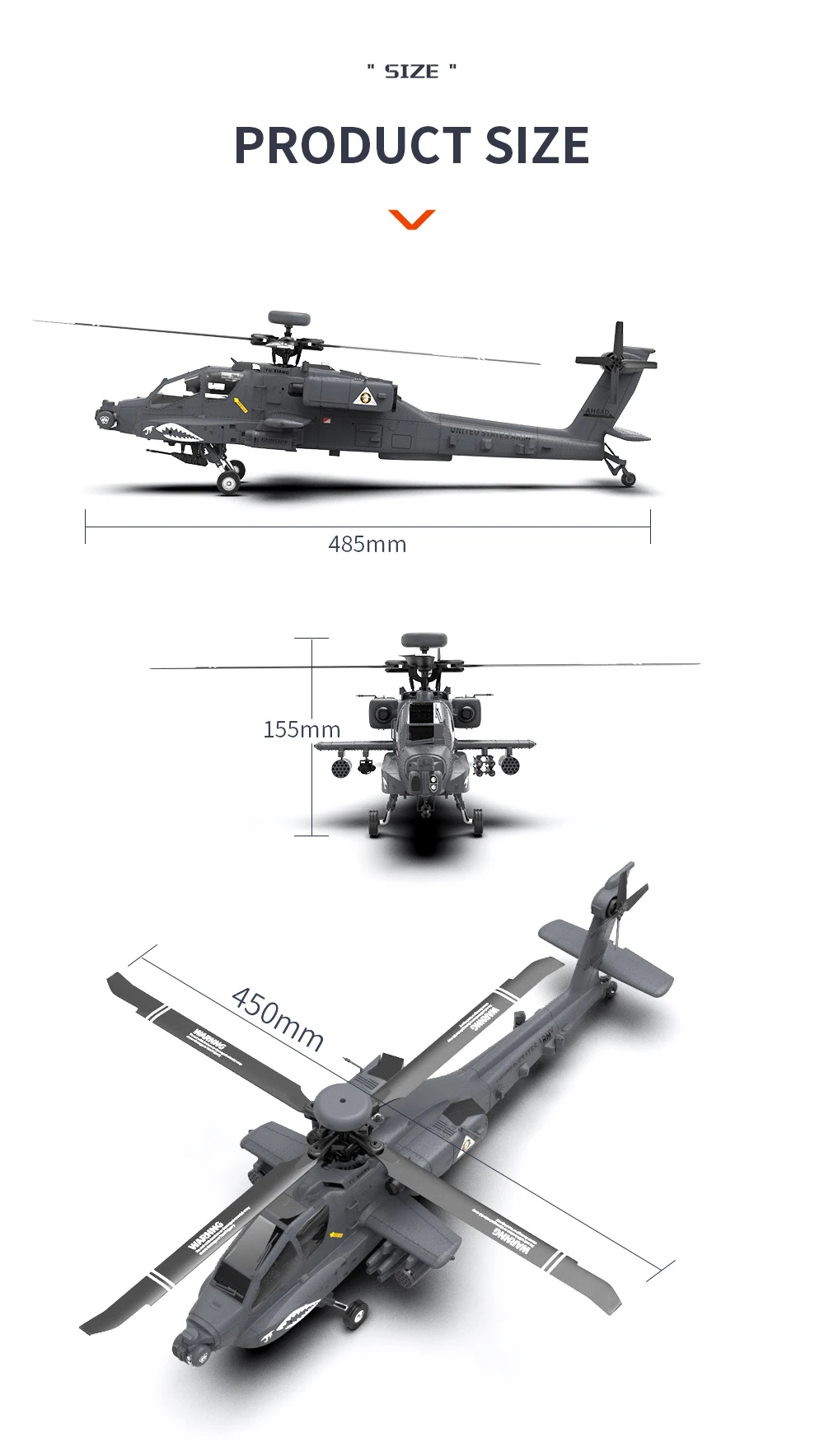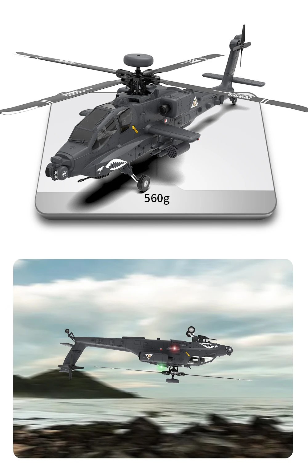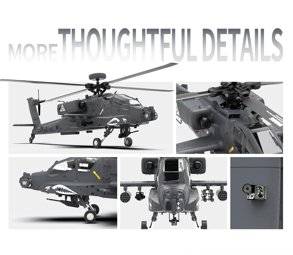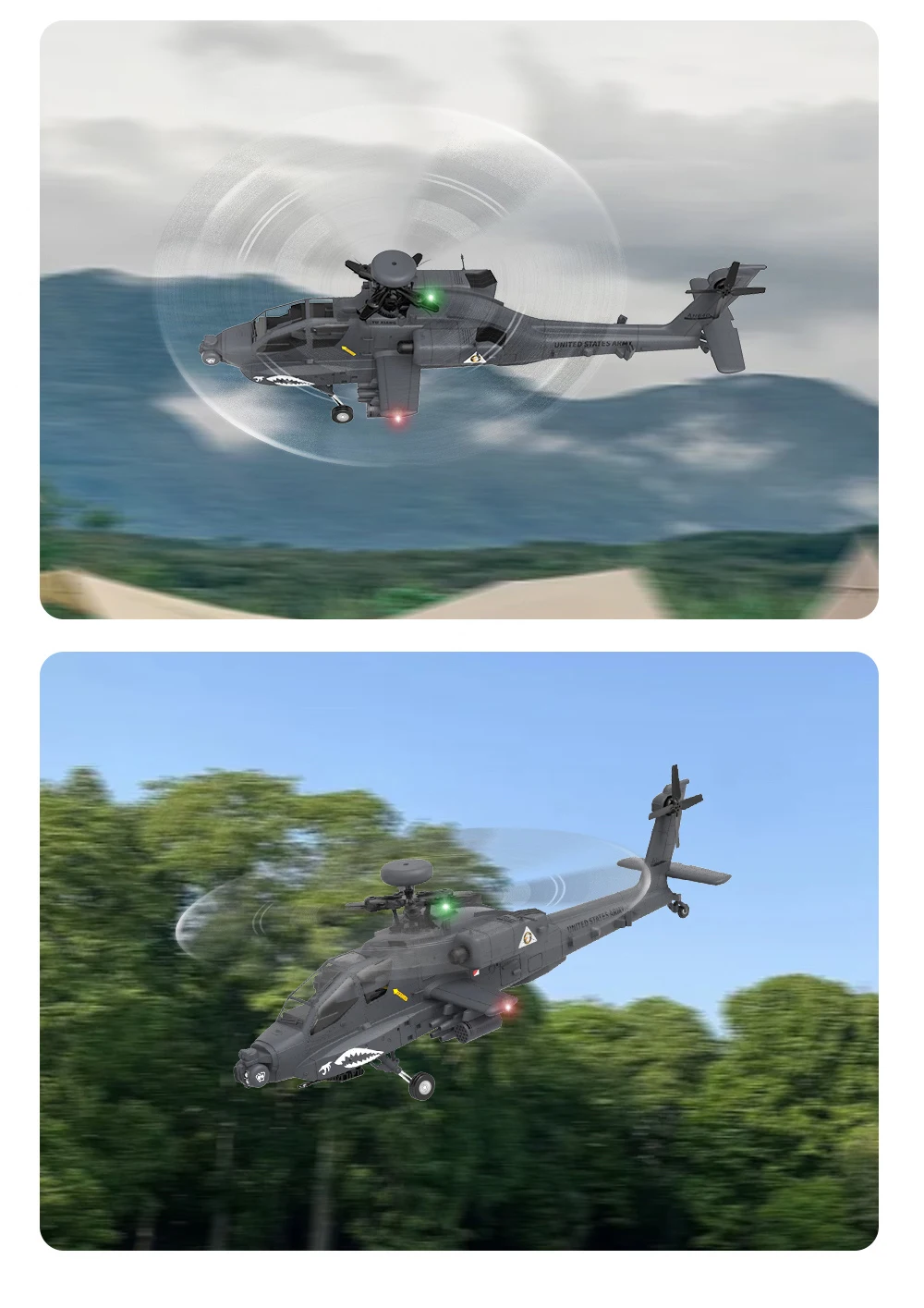 1. High-Precision Design: Scaled down to 1:32 of the Boeing AH-64 Apache Longbow, featuring highly realistic details, stunning lighting effects, and shock-absorbing landing gear.