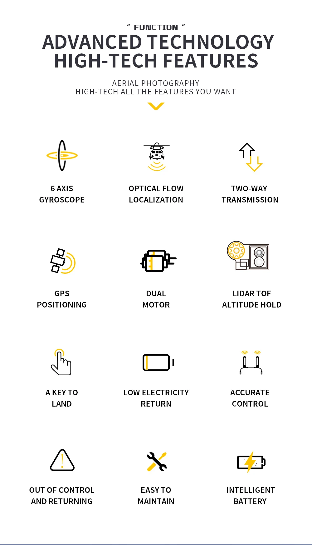 4. Precision Positioning: Utilizes a laser radar and downward optical flow positioning system for more stable and accurate altitude control.