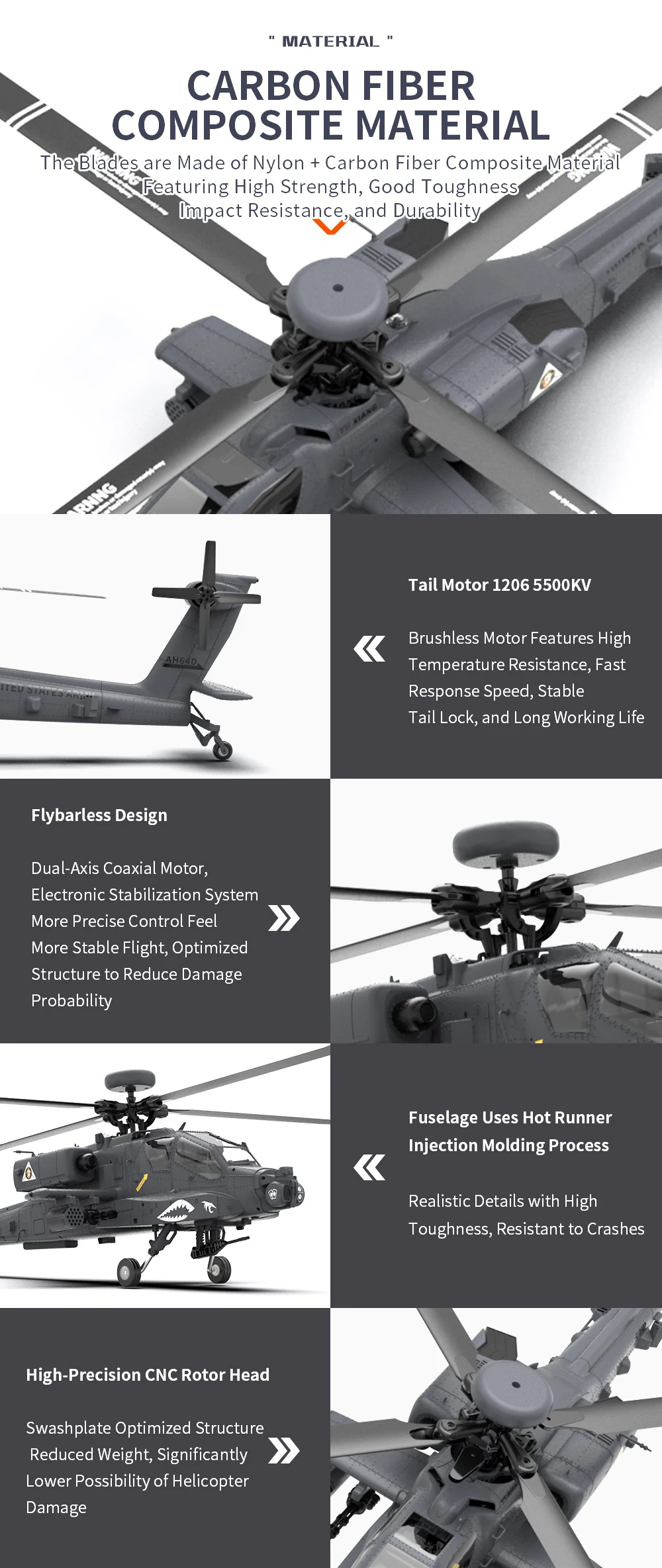 2. Enhanced Realism: Newly optimized for greater realism with updated paint schemes and added details such as weapon mounts, rocket pods, missiles, an onboard Gatling gun, and an aerial refueling pipe. The tail rotor uses a high-efficiency four-blade propeller for improved performance, quieter operation, and greater realism.