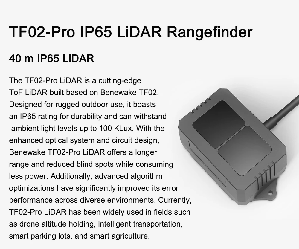 Benewake TF02-Pro 40M IP65 LiDAR Rangefinder Mid-range Distance Sensor Operating Range Lidar Module For Indoor/Outdoor/Robot